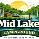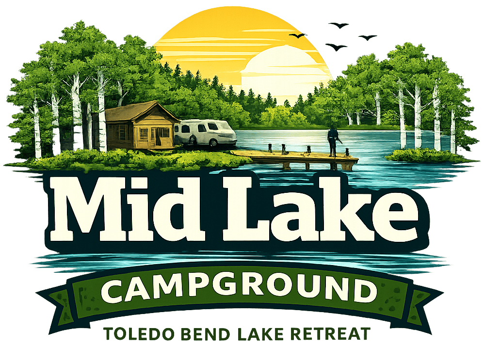 Mid Lake Campground is a quiet waterfront destination located in rural Toledo, right on one of the largest bass fishing lakes in the United States. What started as a classic fish camp has grown into a laid-back retreat offering rustic cedar cabins, private vacation homes, and an RV campground with a strong sense of community.