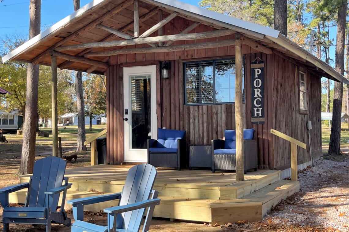 Cabin 10 is located inside Mid Lake Campground, which was built in 1968 with the creation of Toledo Bend Lake. Mid Lake Campground has pull through RV spaces, cabins, and houses. Many of our guests have long term “camps” in the campground; some reside in the campground year-round, while others are winter snowbirds. The campground is very quiet and peaceful with friendly neighbors.